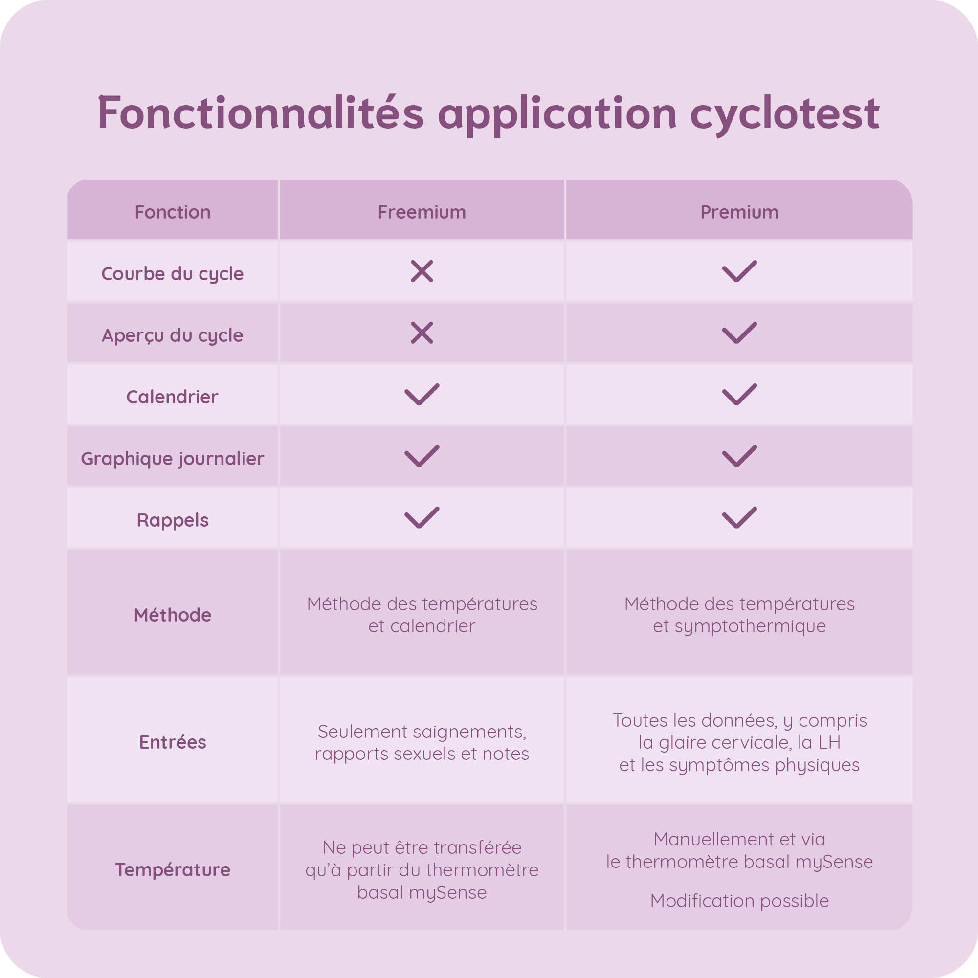 • Application de confiance : Cyclotest est l’application de suivi de cycle fiable (dispositif médical de classe 1)