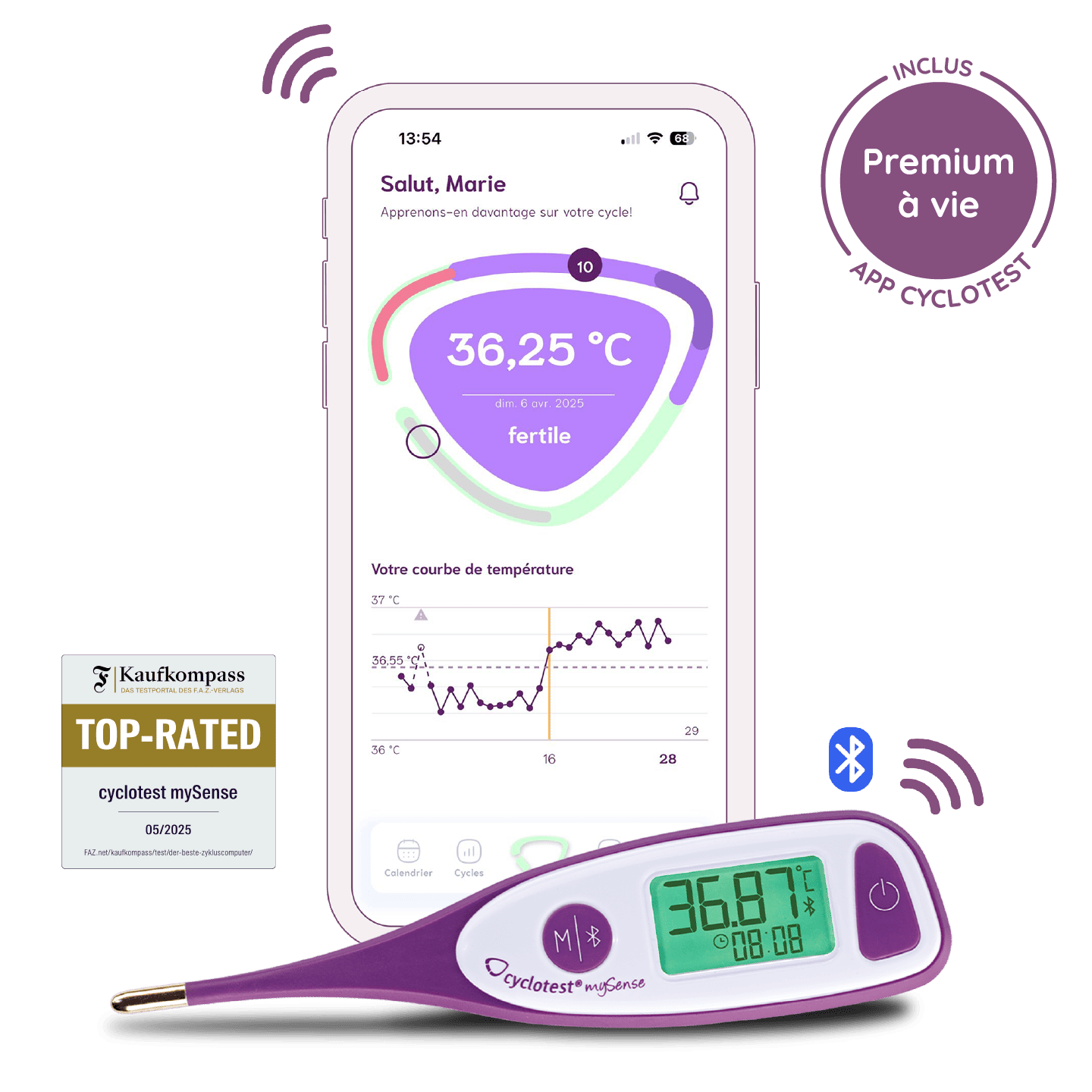 Le duo parfait pour votre cycle : thermomètre basal connecté Cyclotest mySense et son application pour le cycle